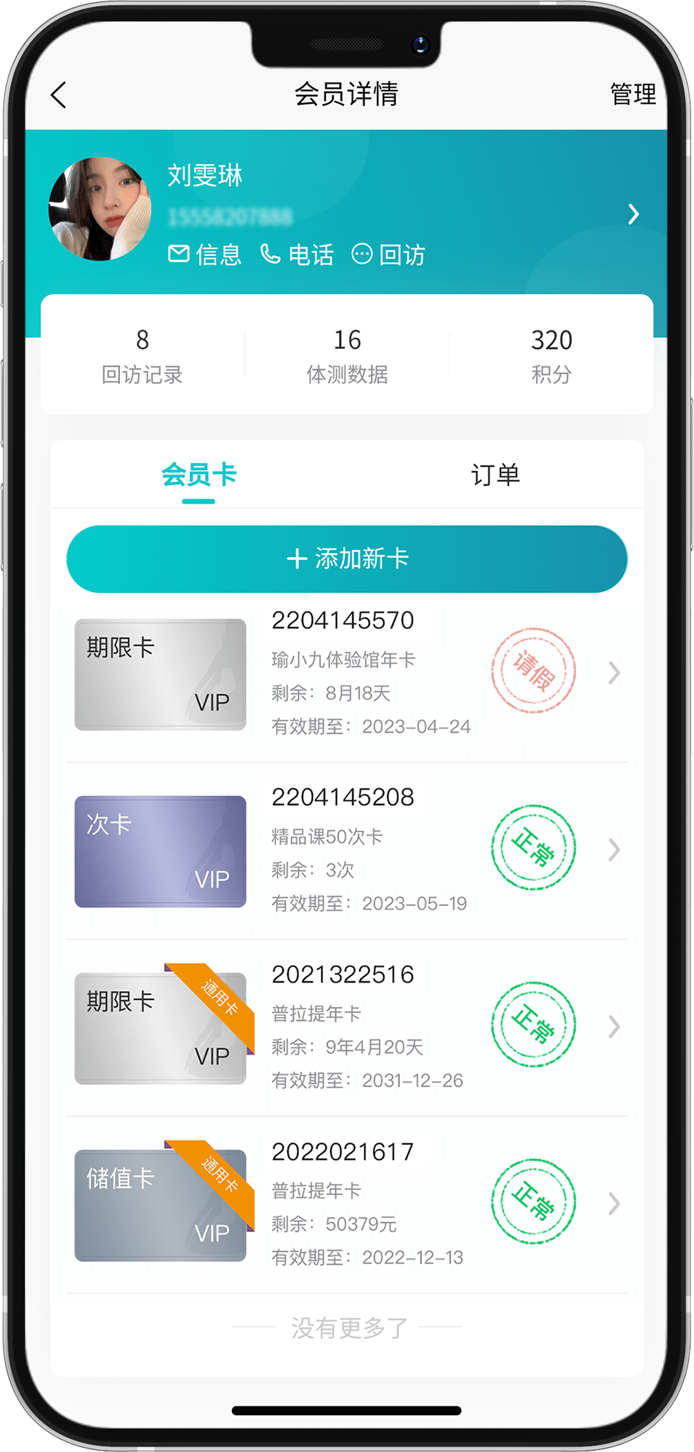 信息记录、体测档案多维度展示,促进销售转化。会员生日、多天未上课等消息提醒,让会员满意度和续卡率显著提升。