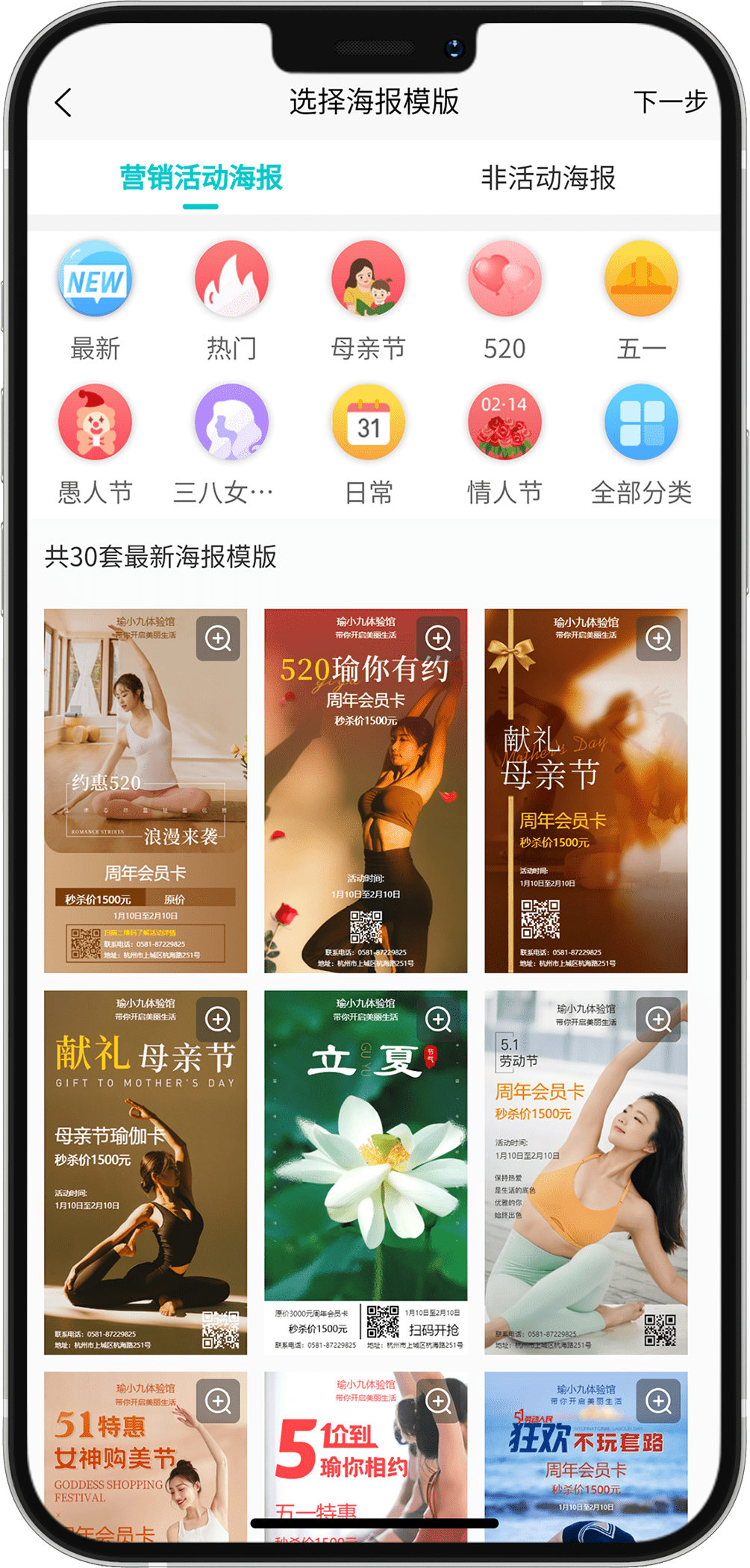 支持各类课程和会员卡,线上一键上架活动;精准帮助瑜伽馆拓客、促进会员高效转化。做瑜伽馆的营销助手。